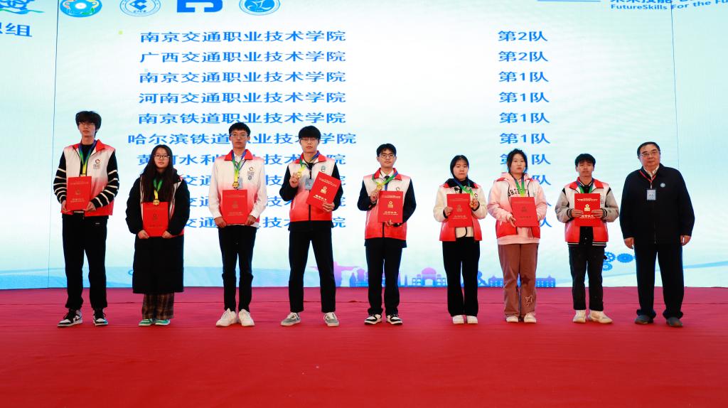 最后,一带一路暨金砖国家技能发展国际联盟交通运输工作委员会副主任江定涛宣布获奖名单,与会领导为获奖集体和个人颁发证书和奖牌。