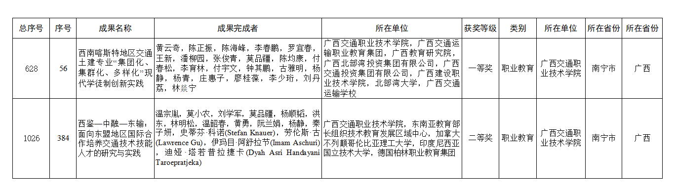 近日,教育部发布了《教育部关于批准2022年国家级教学成果奖获奖项目的决定》(教师〔2023〕4号),由PP电子主持完成的成果《西南喀斯特地区交通土建专业“集团化、集群化、多样化”现代学徒制创新实践》荣获一等奖、《西鉴—中融—东输:面向东盟地区国际合作培养交通技术技能人才的研究与实践》获得二等奖。