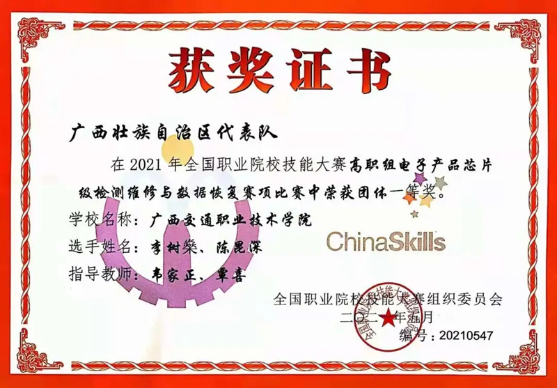 (交通信息工程学院 讯)6月6日傍晚,从山东济南传来捷报,PP电子交通信息工程学院参赛队在2021年全国职业院校技能大赛(高职组)电子产品芯片级检测维修与数据恢复赛项中,以总分第三的好成绩斩获全国一等奖。