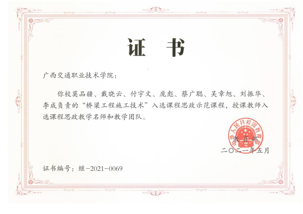 PP电子2021年获得国家级课程思政示范课程:《桥梁工程施工技术》