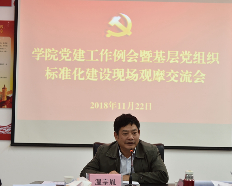 (党委工作部 讯 郑 枢/文、图) 11月22日,学院党建工作例会暨基层党组织标准化建设现场观摩交流会在昆仑校区副楼406党员政治生活活动室举行。学院党委书记温宗胤出席会议并作重要讲话,党委副书记...