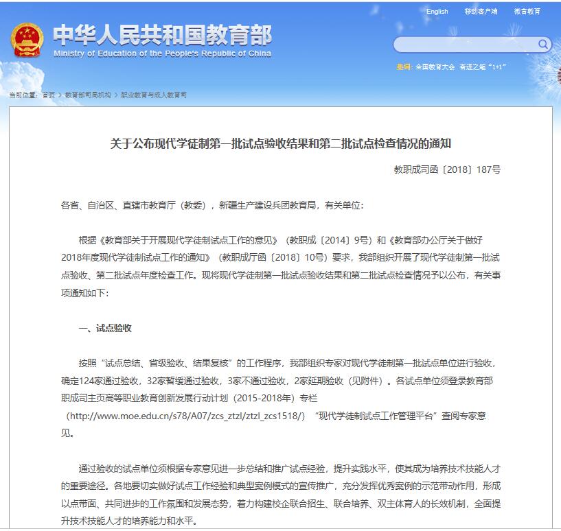 (路桥工程系 讯 李振成、杨静/文)近日,教育部职业教育与成人教育司发布《关于公布现代学徒制第一批试点验收结果和第二批试点检查情况的通知》,我院现代学徒制试点项目顺利通过验收。 根据《...