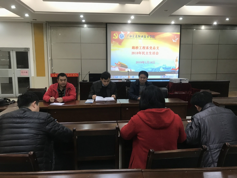(路桥工程系 讯 李振成、刘振华/文 杨静/图)1月14日,路桥工程系党总支在园湖校区图书馆一楼会议室召开民主生活会。学院副院长韦红教参加了此次民主生活会。 路桥工程系党总支书记韦秋平对照检...