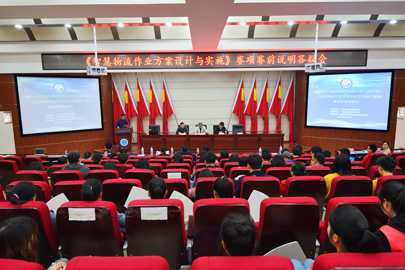(管理工程系 讯 蒋波、梁玥悦/文 袁斌/图)3月15日下午,2019年广西职业院校技能大赛(高职组)《智慧物流作业方案设计与实施》赛项赛前说明答疑会在我院昆仑校区第一学术报告厅顺利举行。本次大赛总裁判长彭欣教授...