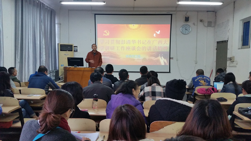 (基础党支部 讯 陆肖乐/文、图)为贯彻自治区党委书记彭清华同志在广西大学调研工作座谈会上的讲话精神,3月15日下午,基础教学部全体教师在园湖校区709教室开展专题学习。 ...