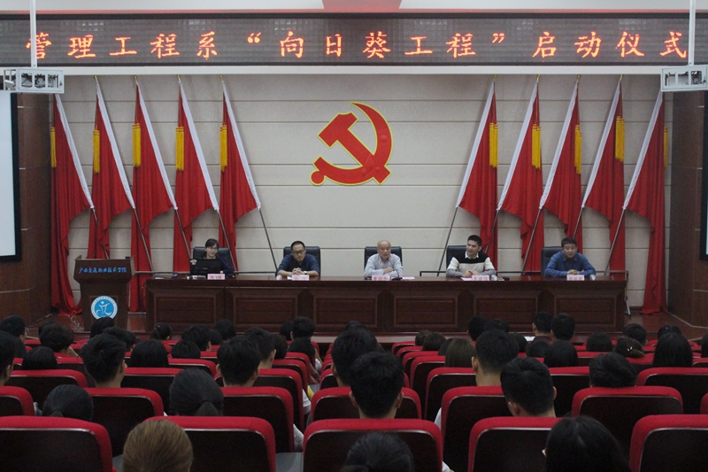 (管理工程系 讯 陈飞霞/文、图) 4月12日下午,管理工程系“向日葵工程”启动仪式在昆仑校区第一学术报告厅举行。学院副院长黄琼念、学工处副处长张佺、系主任郝林毅、系党总支书记龙建强出席了启动仪式。 &nbs...