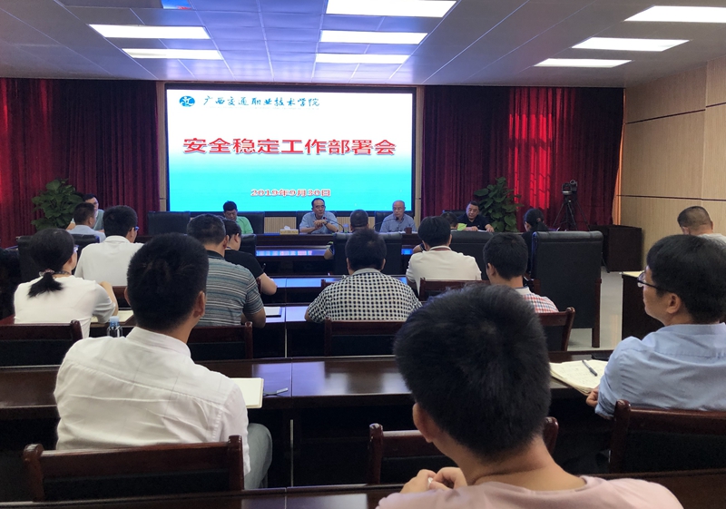 (学校办公室 讯)9月30日上午,学院在昆仑校区管理楼五楼会议室召开了安全稳定工作部署会。学院党政领导班子成员和各部门负责人参加了此次会议。 会上,温宗胤书记传达了9月29日下午召开的自治区交通运输厅安全...