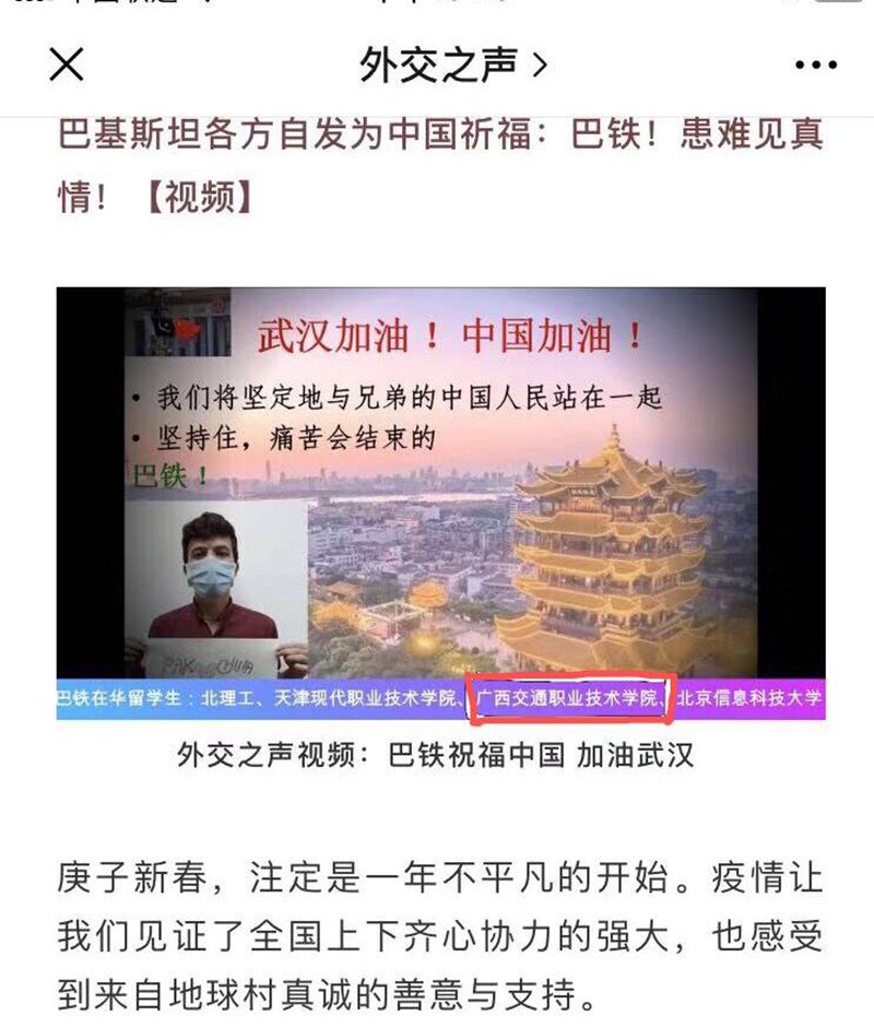 情系中国 助力抗“疫”:学院巴基斯坦留学生抗疫祝福上了“外交之声”