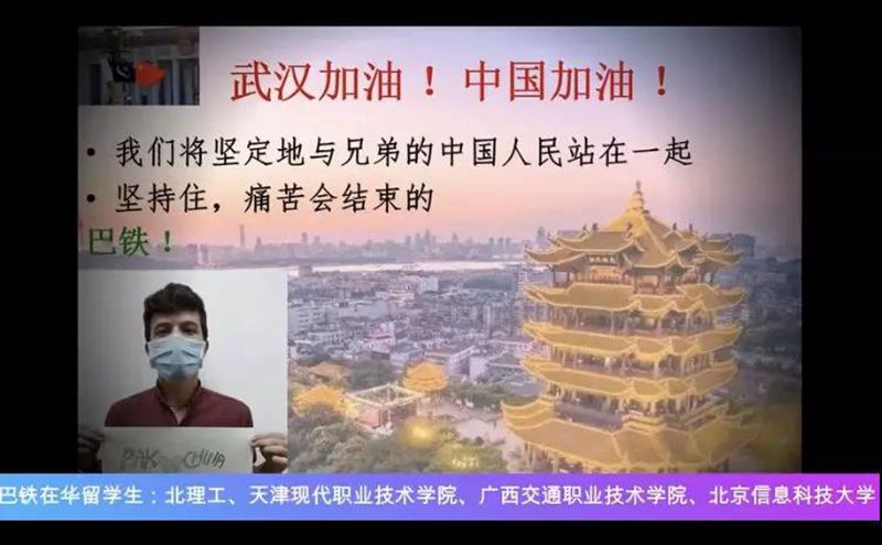 (党工部 讯 韦曙光) 青山一道同云雨,明月何曾是两乡。日前,来自我院的16名巴基斯坦留学生,通过《外交之声》专题视频,传递了“巴铁”祝福中国、加油武汉的心声,让我们真切感受到来自地球村真诚的善意与支...