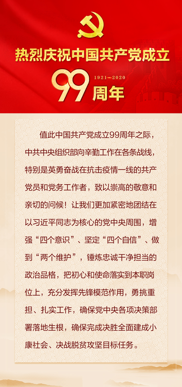 中共中央组织部向全国共产党员和党务工作者致以节日祝贺