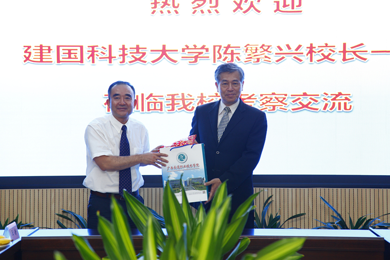 (行政办公室 对外合作交流处 讯)9月16日下午,台湾建国科技大学陈繁兴校长一行莅临学院考察交流。学院在四塘校区管理楼会议室举行洽谈会,院长程轮、副院长陈海峰及东盟职教联展接待工作组成员出...