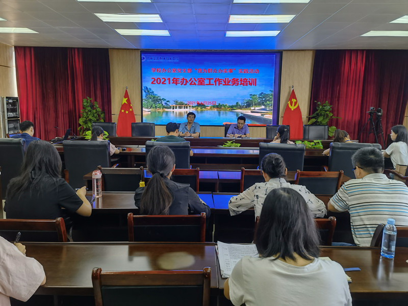 (学校办公室 讯 郭媛媛/文 谢凡/图)6月25日,机关第二党总支学校办公室党支部在昆仑校区管理楼五楼会议室组织开展2021年办公室工作业务培训。学校副校长陈海峰出席培训,各单位、各部门办公室主任及相关工作人...