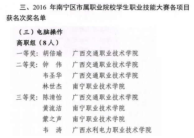 【信息系讯】我院大学生喜获2016年全国科技活动周南宁区市属职业院校学生职业技能大赛佳绩
