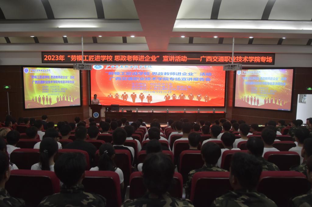 9月20日下午,学校邀请自治区交通运输系统劳模工匠宣讲团到校开展了“劳模工匠进学校”宣讲活动,3位来自不同交通运输岗位的劳模工匠分享了自己的成长经历和心路历程。宣讲报告会现场宣讲团带队领导,广西交通工会、海员工会主席廖红梅在宣讲会上介绍“‘劳模工匠进学校 思政教师进企业’活动是自治区总工会深入学习贯彻党的二十大精神和习近平总书记关于工人阶级和工会工作的重要论述,着力打造高等院校师生思想政治工作和劳...