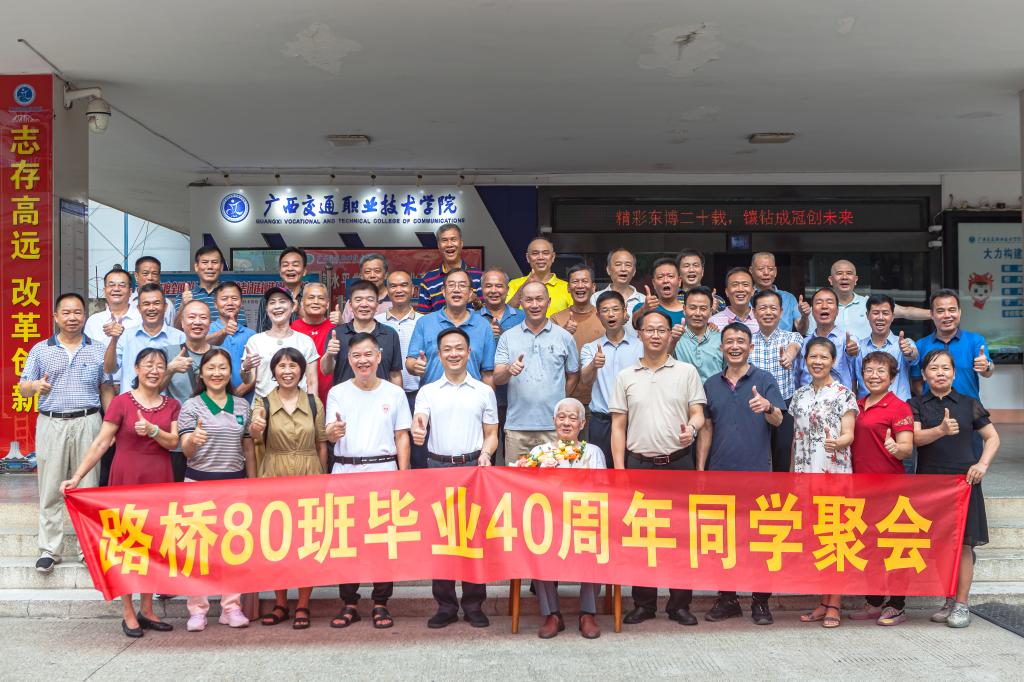 时光荏苒,岁月如歌。1980年的深秋,改革开放的号角响彻各个角落,春潮激荡在希望的田野上。怀揣广西交通学校的录取通知书,承载着命运和缘份的安排,走到同一个地方,坐进同一间教室,搏起同样的脉动,扬起了友谊的风帆。在这里,他们留下了青春的靓丽身影;在这里,他们结下了同学的深厚情谊。这是一个风和日丽的日子,这是一个难忘的日子!适值学校建校65周年之际,路桥80班校友相约重返母校,开展毕业40周年纪念活动,共话...