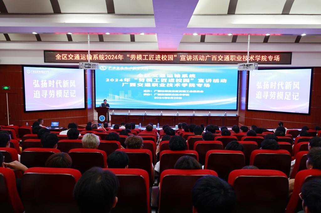 (工会/讯龚春鸣/文)9月29日上午,学校昆仑校区第一学术报告厅内座无虚席、掌声不断,一场由自治区交通工会主办的“劳模工匠进校园”活动在这里如火如荼进行。自治区交通工会主席廖红梅、学校副校长陈正振出席活动。学校200余名师生现场聆听这一堂“大思政课”。活动现场,四位来自交通运输行业不同岗位的劳模工匠与师生面对面交流,讲述自己在各自领域中的奋斗历程。广西机械工业研究院有限责任公司研发中心智能装备部副部长...