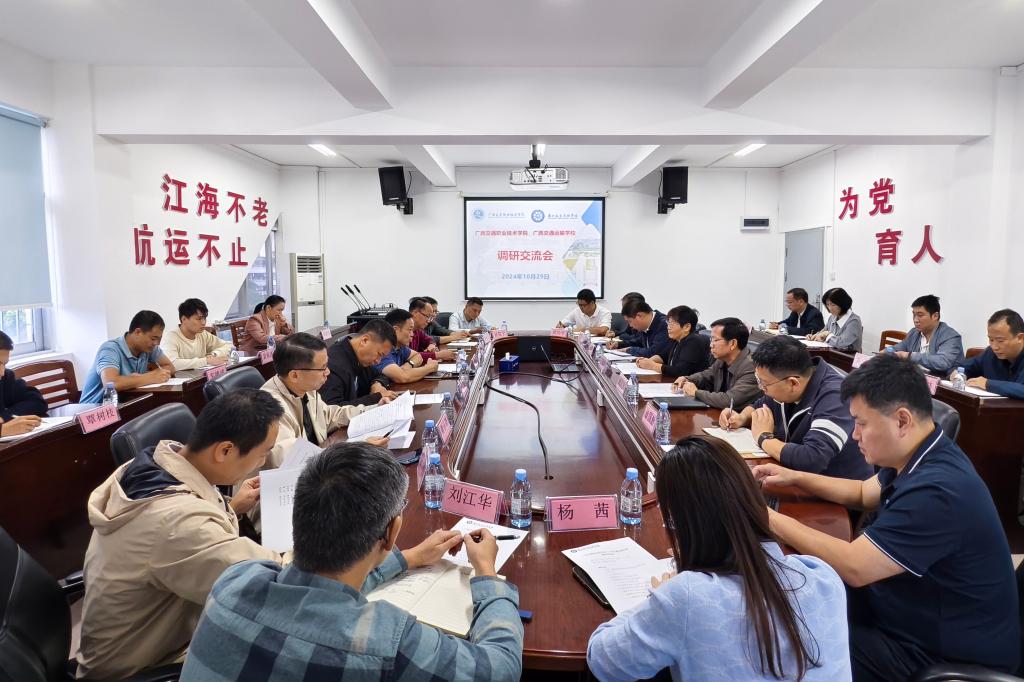 (学校办公室 讯)10月29日,学校党委书记陈湘如、校长李文勇带队到广西交通运输学校,就“两校”全面融合发展工作开展调研交流。调研交流会现场在调研交流会上,广西交通运输学校党委书记、常务副校长王海英就“两校”全面融合发展工作取得的阶段性成效、存在的问题与困难、学校土地利用及中高职一体化办学等专项工作进行汇报,党委副书记、纪委书记成汉方、副校长黄兆牛就融合发展工作及土地利用情况分别做了汇报,与会中层干...