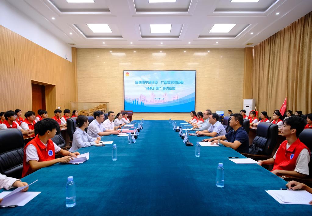 (校团委 讯)11月19日,中国铁路南宁局集团有限公司团委(以下简称“南宁铁路局团委”)、学校团委举办“扬帆计划”校企合作签约仪式,学校党委副书记陈海峰、南宁铁路局团委负责人邓开托出席仪式。签约仪式现场会上,学校党委副书记陈海峰向长期以来关心和支持学校事业发展的南宁铁路局表示感谢,充分肯定一段时间以来学校志愿服务和社会实践工作取得的成效。陈海峰副书记要求,学校共青团应以“扬帆计划”校企合作为切入点,...