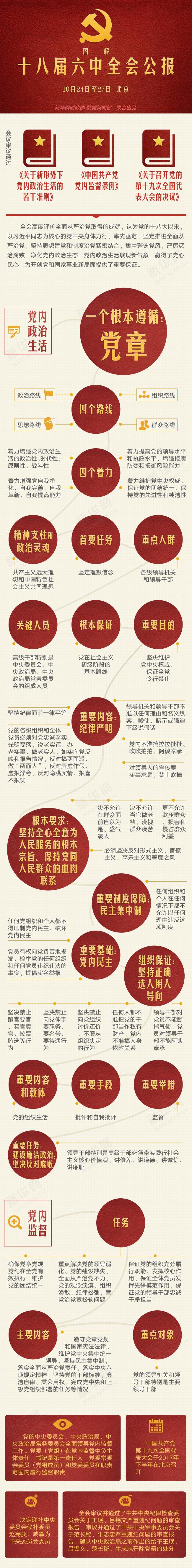 新华社北京10月27日电 人民日报10月28日 社论:坚定不移推进全面从严治党 丙申金秋,硕果累累。中国共产党第十八届中央委员会第六次全体会议胜利闭幕。这是在中国共产党成立95周年、红军长...