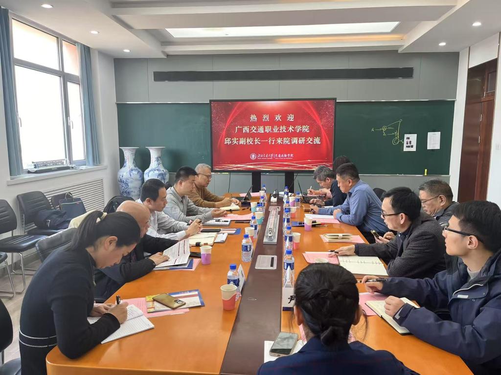 (发展规划处、交通运输学院 讯 黄奕洲、黄勇/文)近日,学校副校长邱实带队赴北京科技职业大学、北京交通大学交流学习。在北京科技职业大学调研交流中,双方就科研与社会服务、国际学生管理、国际交流合作等内容开展深入交流,表示将进一步加强“校校”合作,搭建资源共享与信息互通平台,充分利用各自区位、行业、专业互补优势,共同拓展面向东盟“职教出海”合作,促进两校高质量跨越式发展。邱实副校长一行参观北京科技职业...