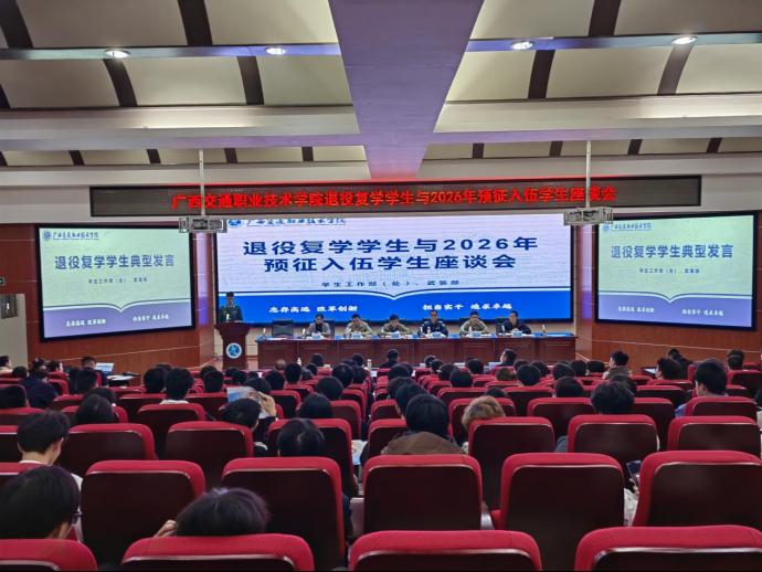 (武装部 讯 韦竣耀/文、图)11月18日下午,学校在昆仑校区第一学术报告厅召开退役复学学生与2026年预征入伍学生座谈会。副校长戴晓云出席座谈会。会上,戴副校长总结了学校近3年来在征兵工作上取得的成绩,向退役复学学生提出三点殷切期望:一是当好“作风传承者”,将军营纪律作风融入校园生活;二是当好“学业攻坚者”,以军旅韧劲攻克学业难关;三是当好“国防宣传员”,分享军旅感悟、传递报国热忱。他寄语预征入伍学生,...
