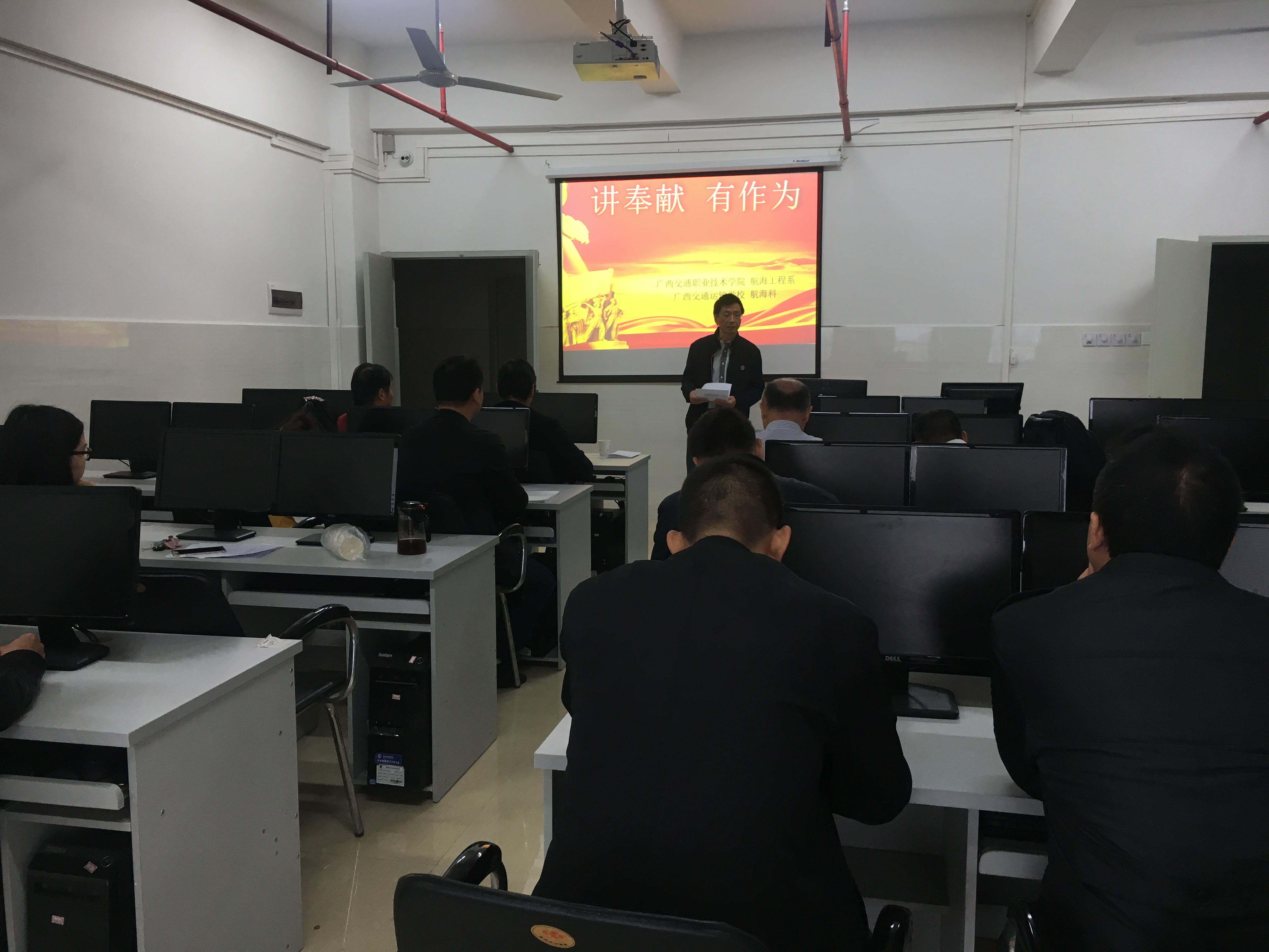 (航海工程系 讯) 11月23日下午,航海工程系党支部与广西交通运输学校航海科党支部联合举办“讲奉献,有作为”专题学习讨论会。该系全体党员和广西交通运输学校党支部全体教师党员参加会议。学院副院长黄琼念到现场参...