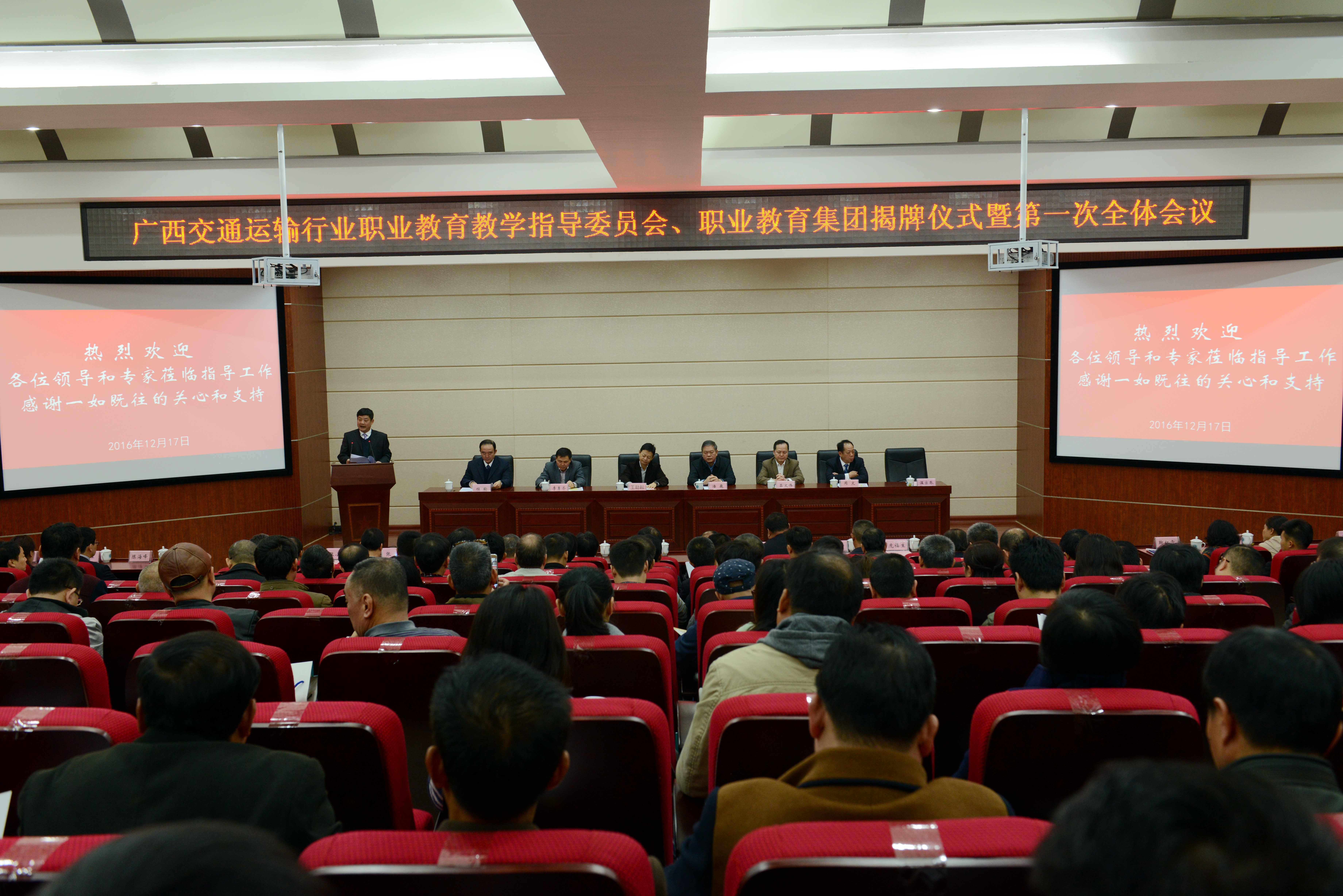 (党委工作部 讯)12月17日上午,广西交通运输行业职业教育教学指导委员会、广西交通运输职业教育集团揭牌仪式暨第一次全体会议在我院四塘校区第一学术报告厅举行。 自治区交通运输厅厅长潘巍、广...