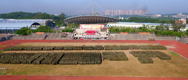(图片新闻 朱青穗、雷裕欢/图)9月28日上午,学院在四塘校区田径运动场隆重举行2017级新生军训会操大会。 相逢是首歌, 同行是你和我~ 谢谢我们亲爱的教官...