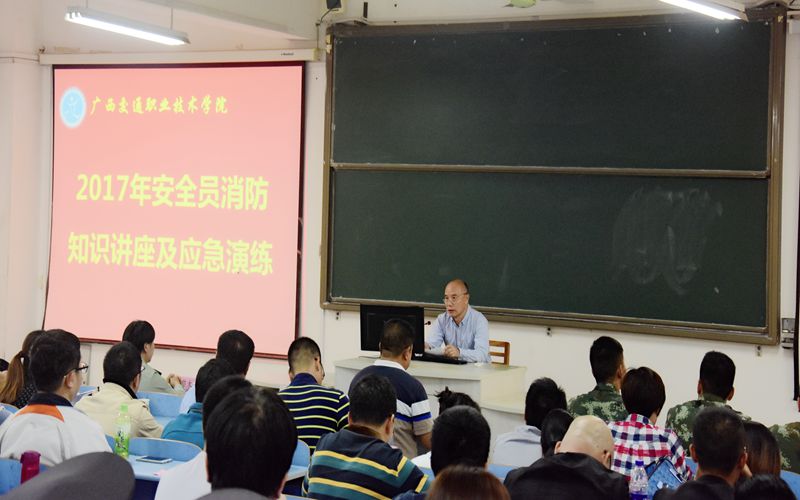 (后勤保卫处 讯 黄春莉、黄文佳 图/文) 为不断提升我院教职工安全意识,11月14日,后勤保卫处联合兴宁区消防大队在综合楼举办 2017年安全员消防知识讲座,开展应急演练活动。学院副院长黄琼念作动员讲话并认真聆听...