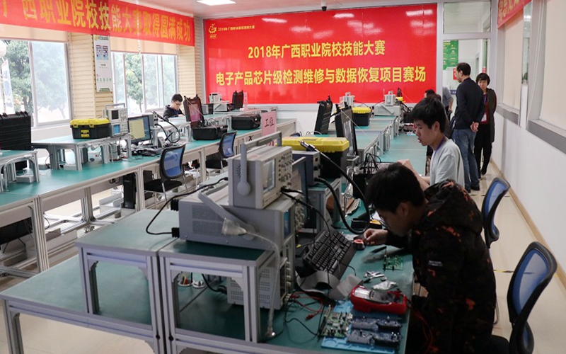 (信息工程系 讯 张骄春、孙坚、阮兰娟/文 ) 近日,广西壮族自治区教育厅主办的2018年广西职业院校技能大赛(高职组)电子产品芯片级检测维修与数据恢复、VR动漫设计与制作、文秘综合技能赛项三个...