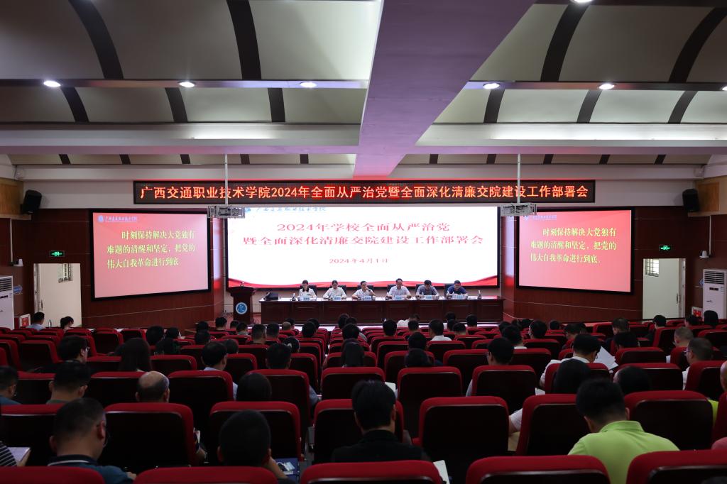 (党委办公室 讯 郑枢/文)4月1日,学校2024年全面从严治党暨全面深化清廉交院建设工作部署会在昆仑校区第一学术报告厅召开。会议深入学习贯彻二十届中央纪委三次全会精神,深刻领悟习近平总书记关于党的自我革命的重要思想,传达学习中央和自治区有关会议精神,全面总结过去一年学校全面从严治党和清廉交院建设工作,分析研判当前形势,研究部署2024年重点任务。会议现场学校领导陈湘如、李文勇、莫海燕、陈海峰、麻新桃、陈正...