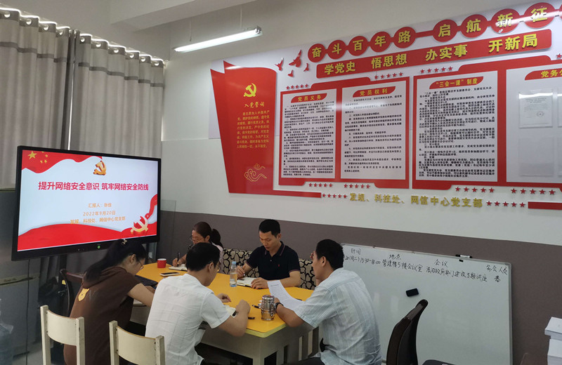 (发规、科技处、网信中心党支部 讯 全海珍/文、图)近日,发规、科技处、网信中心党支部开展“网络安全”专题学习。 张佺书记以《提升网络安全意识 筑牢网络安全防线》为主题给大家上了一堂生动、深刻的党课。张...