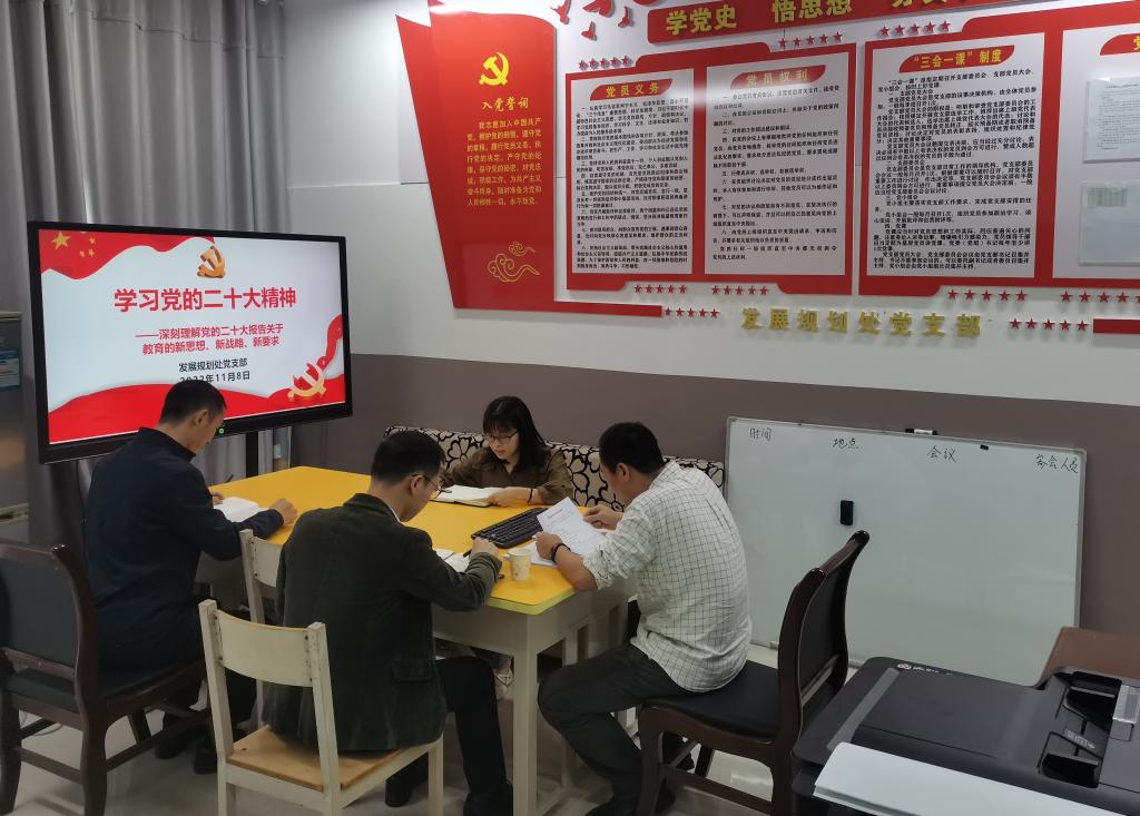 近日,发展规划处党支部组织开展党的二十大精神专题学习会。会上,张佺书记首先传达了近期上级部门关于学习宣传贯彻党的二十大精神有关工作的要求,指出学习好、宣传好、贯彻好党的二十大精神,是当前和今后一个时期的首要政治任务,要充分认识、全面领会党的二十大精神的重大意义和丰富内涵,深刻领悟“两个确立”的决定性意义,增强“四个意识”、坚定“四个自信”、做到“两个维护”,切实把思想和行动统一到党的二十大精神...