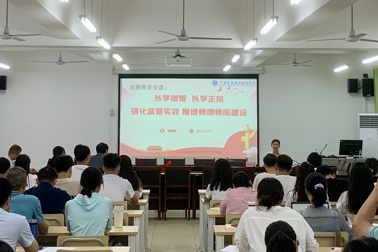 6月27日下午,学校纪委书记麻新桃以“以学增智、以学正风,强化监督实效,推进师德师风建设 ”为题,讲授了一堂生动的主题教育党课。土建学院全体教职工、学生党员参加党课。麻新桃书记从以学增智提升“三种能力”,用“六个坚持”办好党和人民满意教育,深入调研破解学校日常监督难题,强化师德师风建设等方面展开具体讲授。指出要深入学习贯彻习近平新时代中国特色社会主义思想,坚持以学铸魂、以学增智、以学正风、以学促干...