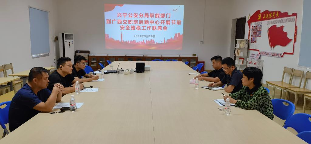 (黄少雄文/图)9月26日下午,南宁市兴宁公安分局大队长孙涛一行到PP电子后勤中心开展节前安全维稳工作联席会,学校后勤保障服务中心副主任李锦、白克云及相关人员参加了本次联席会。会上,李锦副主任感谢南宁市兴宁公安分局对学校安全稳定工作给予的大力支持和关心指导,特别在校园周边环境整治、学生队伍建设、校园应急处置、保安培训等方面深度合作,进一步提升了“警校”联动成效。希望双方在学生队伍建设、网络舆情、校园治...