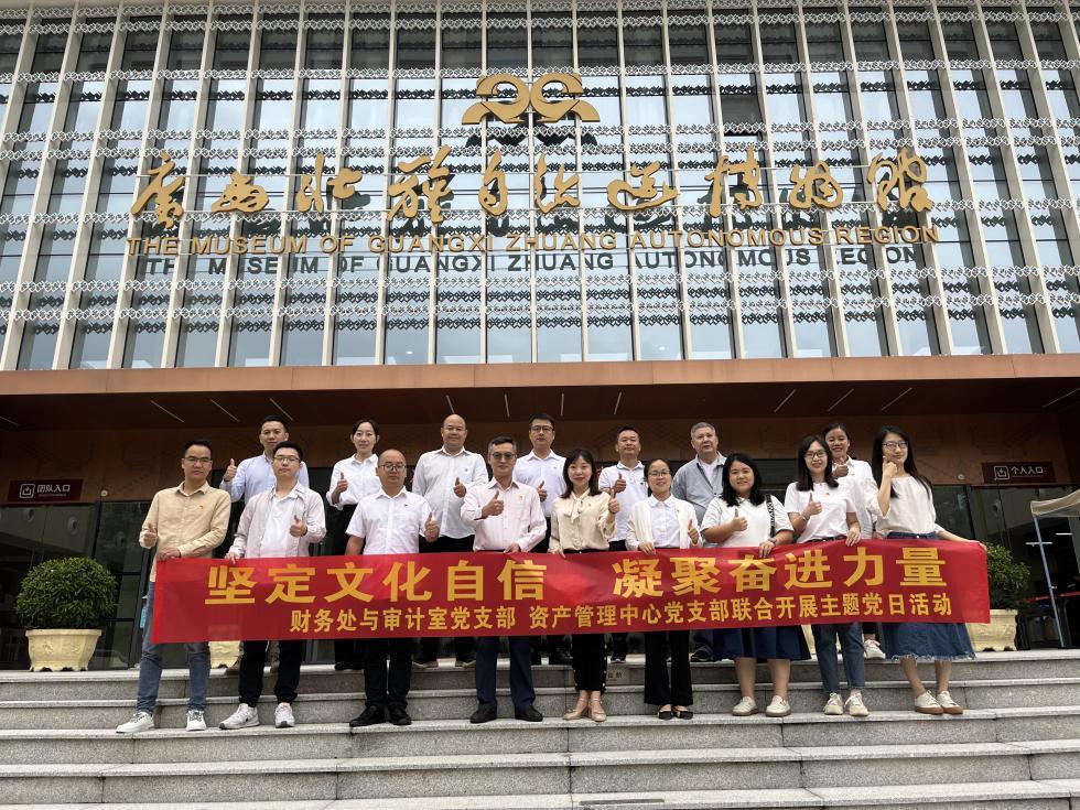 (财务处与审计室党支部和资产管理中心党支部 讯 宣云/文 、黄久栋/图)10月12日,财务处与审计室党支部和资产管理中心党支部前往广西壮族自治区博物馆开展“坚定文化自信 凝聚奋进力量”主题党日活动。活动现场在讲解员的讲解与引导下,全体党员及入党积极分子参观了“合浦启航——广西汉代海上丝绸之路“主题展馆,了解到广西在古代海上丝绸之路中的独特历史地位,海上丝绸之路不仅是贸易之路,也是文化交流之路,更是一条友...