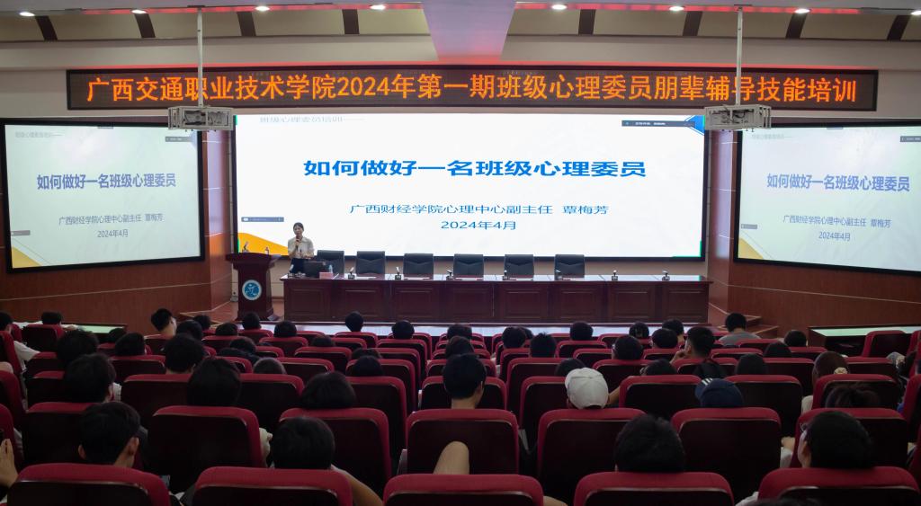 (学生工作部 讯 樊毓美/文)4月30日下午,学校在昆仑校区第一学术报告厅举办了2024年第一期班级心理委员朋辈辅导技能培训。学校邀请广西财经学院心理健康教育与咨询中心副主任覃梅芳进行培训。学校心理中心、心理课授课教师以及全校班级心理委员300余人参加了本次培训。 在本次培训中,覃梅芳副主任主要从心理委员的基本素养、班级心理活动的策划及组织、常见心理问题的识别与应对、心理危机的识别与干预四个专题进行了详细...