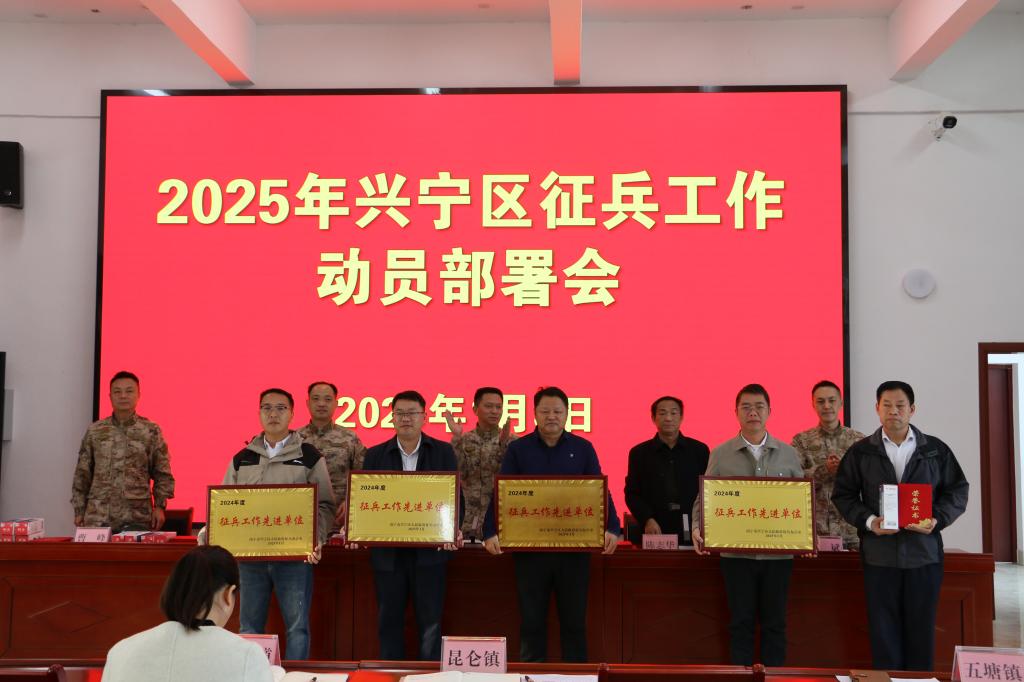 (学生工作部、武装部 讯 冯建华/文、图)1月8日,兴宁区武装部召开2025年征兵工作动员部署暨荣誉表彰大会,学校荣获兴宁区“征兵工作先进单位”称号,黄庆华和冯建华老师被评为“征兵工作先进个人”。学校获兴宁区“征兵工作先进单位”称号(左二)一直以来,学校高度重视征兵工作,将其作为学校的一项重要政治任务来抓,形成了通过强组织领导、强宣传教育、强靶向服务、强示范作用助推征兵工作推动力、感召力、保障力、引领力...