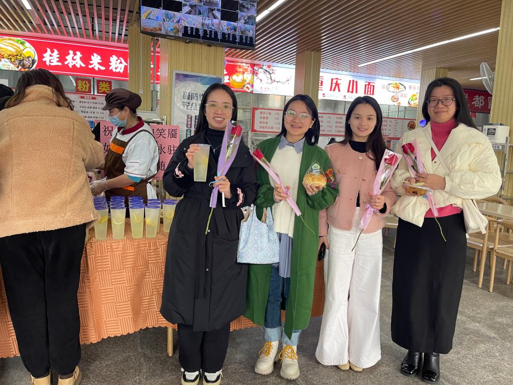 (后勤保障服务中心 讯 王宇冰/文、图)三月春风暖,巾帼绽芳华。为庆祝第115个“三八”国际劳动妇女节,3月7日,各食堂纷纷开展了“三八女神节”送温暖活动,为全校女教职工和女学生们送上节日祝福,传递温暖与关怀。活动当天,各食堂洋溢着温馨的节日氛围。食堂工作人员早早布置场地,精心准备了香甜的甜品、暖心的奶茶、松软的面包以及象征祝福的玫瑰花。每一位前来就餐的女同胞都收到了一份特别的节日礼物,惊喜之情溢于言...