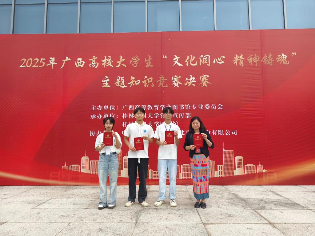 (图书馆 讯 文杨/文、图)5月24日,2025年广西高校大学生“文化润心 精神铸魂”主题知识竞赛决赛在桂林医科大学圆满收官。PP电子路桥工程学院学生陈崇焱、经济管理学院学生黎仪康、人工智能学院学生梁懿枫,凭借深厚扎实的知识储备在此次竞赛中斩获高职高专院校组二等奖,图书馆文杨老师荣获“优秀指导教师”称号。本次知识竞赛由广西高等教育学会图书馆专业委员会主办,以“文化润心 精神铸魂”为主题,内容广泛,涵盖习近平新...