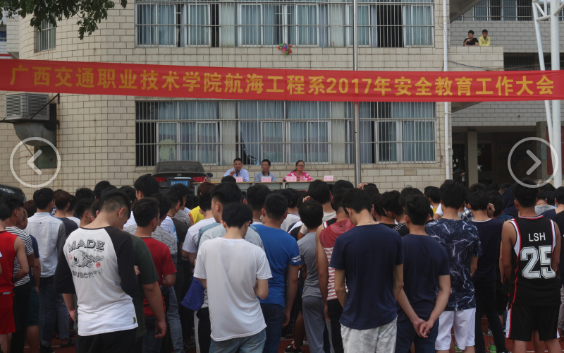(航海工程系 讯)近日,航海工程系在广西交通运输学校田径场召开2017年安全教育工作大会。航海工程系师生参加了会议。 会上,航海工程系系主任蒋运劲从依法治校、维护校园安全稳定、现代素质教育等方面阐述了大...