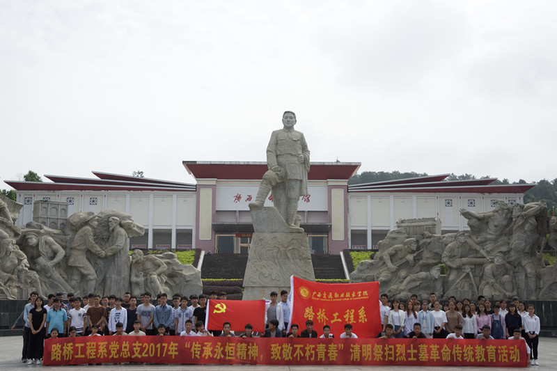 (路桥工程系 讯 刘振华/文 记者团/图)近日,路桥工程系师生前往广西烈士陵园开展祭扫烈士的革命传统教育活动。 全体成员认真了解了广西烈士陵园的历史背景并在纪念碑前默哀。随后,全体成员重宣入团(入...