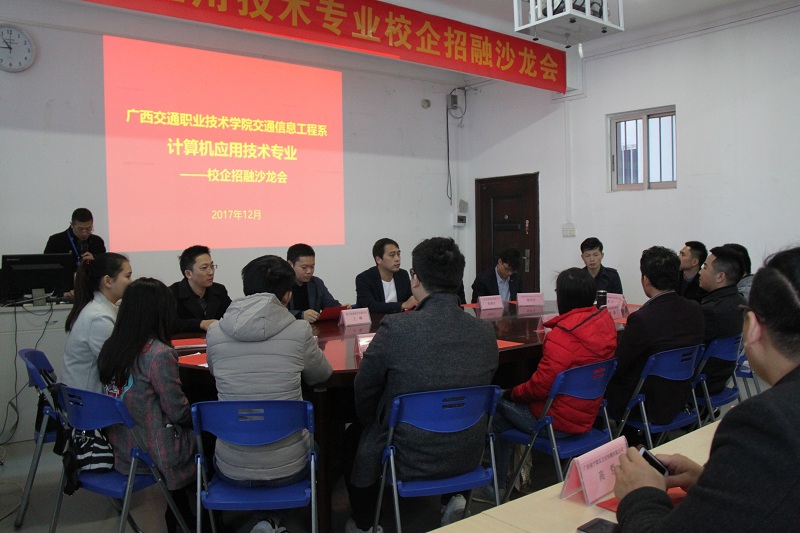 (交通信息工程系 讯 阮兰娟/文)近日,交通信息工程系第二届计算机应用技术专业校企招融沙龙会在园湖校区教学楼707会议室举行。南宁市易唐软件有限公司、广西合和科技有限公司等12家企业代表参加了此次沙龙会。 ...