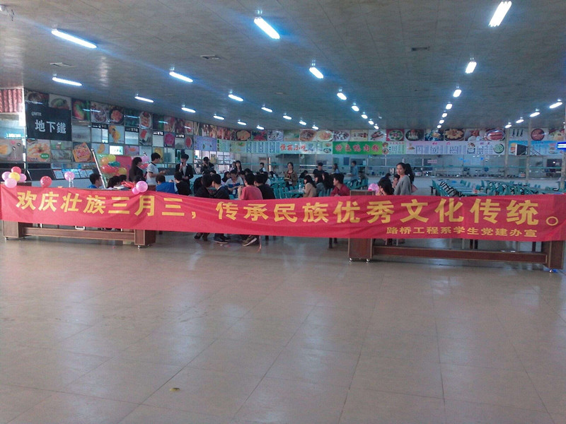 (路桥工程系 讯 蓝惠玲、张楗/文 党建办/图) 欢庆壮族“三月三”,传承民族优秀文化。4月2日中午,路桥工程系学生党建办在中二区食堂举办欢庆“三月三”民族风情文化趣味活动,...