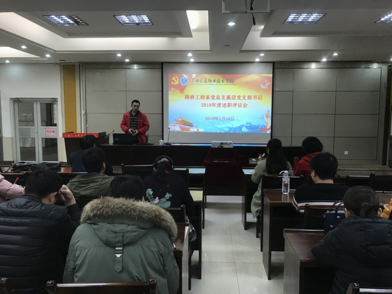 (路桥工程系 讯 李振成、李丽晶/文 李丽晶/图) 1月14日,路桥工程系在园湖校区图书馆一楼会议室召开基层党支部书记2018年度述职评议会。路桥工程系党总支书记韦秋平主持会议,全体党员教师参加了会议。 ...