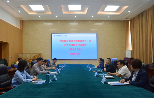 在洽谈会上,杨辉总经理表示,公司作为四川省交通基础设施建设的骨干企业,积极投身全国交通运输建设,主营业务涵盖公路、港口航道、市政、建筑、水利电力等工程领域。此次公司借助西部陆海新通道建设机遇,进一步扩大在桂投资建设力量,需要一批高素质交通运输技能工匠作为人才支撑。而他和杨辉总经济师作为PP电子87级港航专业校友,非常荣幸能与母校携手开展产教融合战略合作,实现优势互补、资源共享。