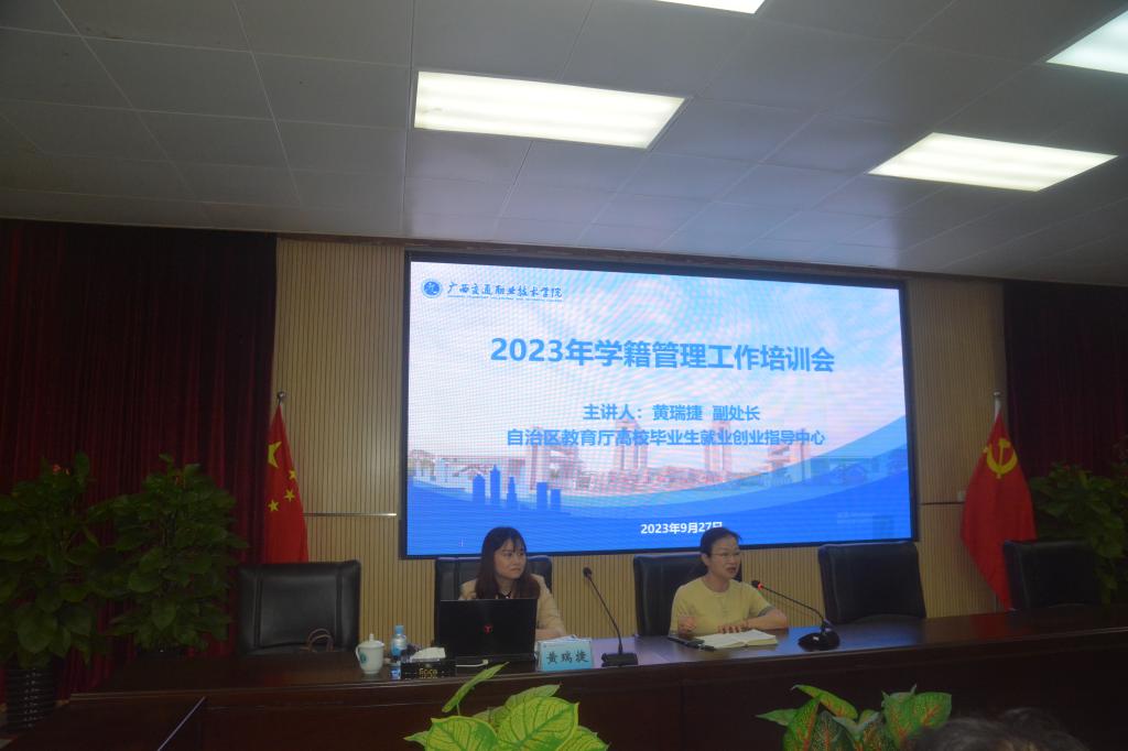 (招生就业处讯 李璇/文、图)为进一步规范PP电子学籍管理工作,确保学籍管理工作规范、有序、高效,更好地为学生服务,提升学校学籍管理水平和育人成效,9月27日下午,学校2023年学籍管理工作培训会在昆仑校区管理楼5楼会议室举办,自治区教育厅高校毕业生就业创业指导中心副处长黄瑞捷应邀出席会议并做专题培训,招生就业处、教务处负责人,各二级学院分管领导、学工办主任,2023级辅导员共60余人参加了此次培训,会议由招生就业处处长何江霞主持。