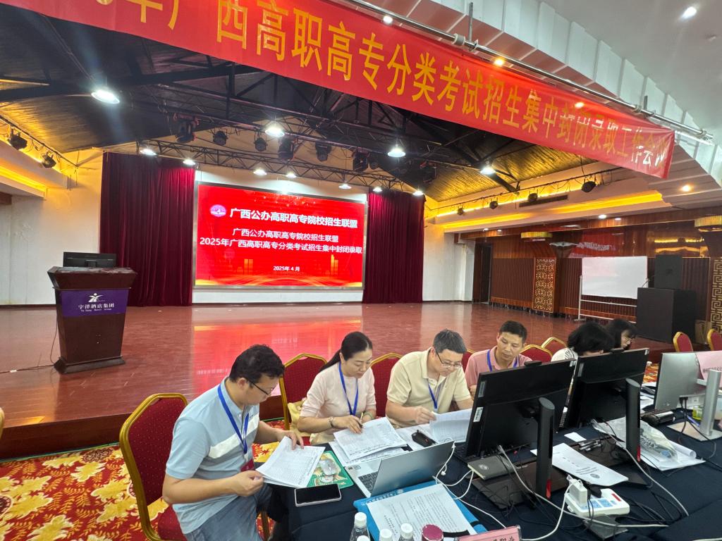 自广西2025年高等职业院校分类考试招生录取工作启动以来,全校上下一心,以高度的责任感、使命感、紧迫感,齐心协力、多措并举做好招生宣传工作,严肃公正、严谨规范做好录取工作,充分保障2025年分类考试招生工作平稳、顺利、有序进行,为学校高质量发展聚拢优质生源。